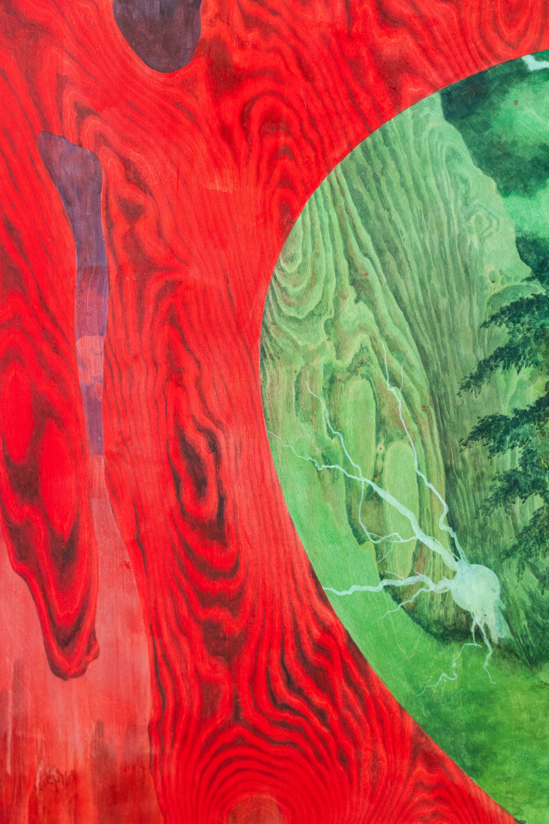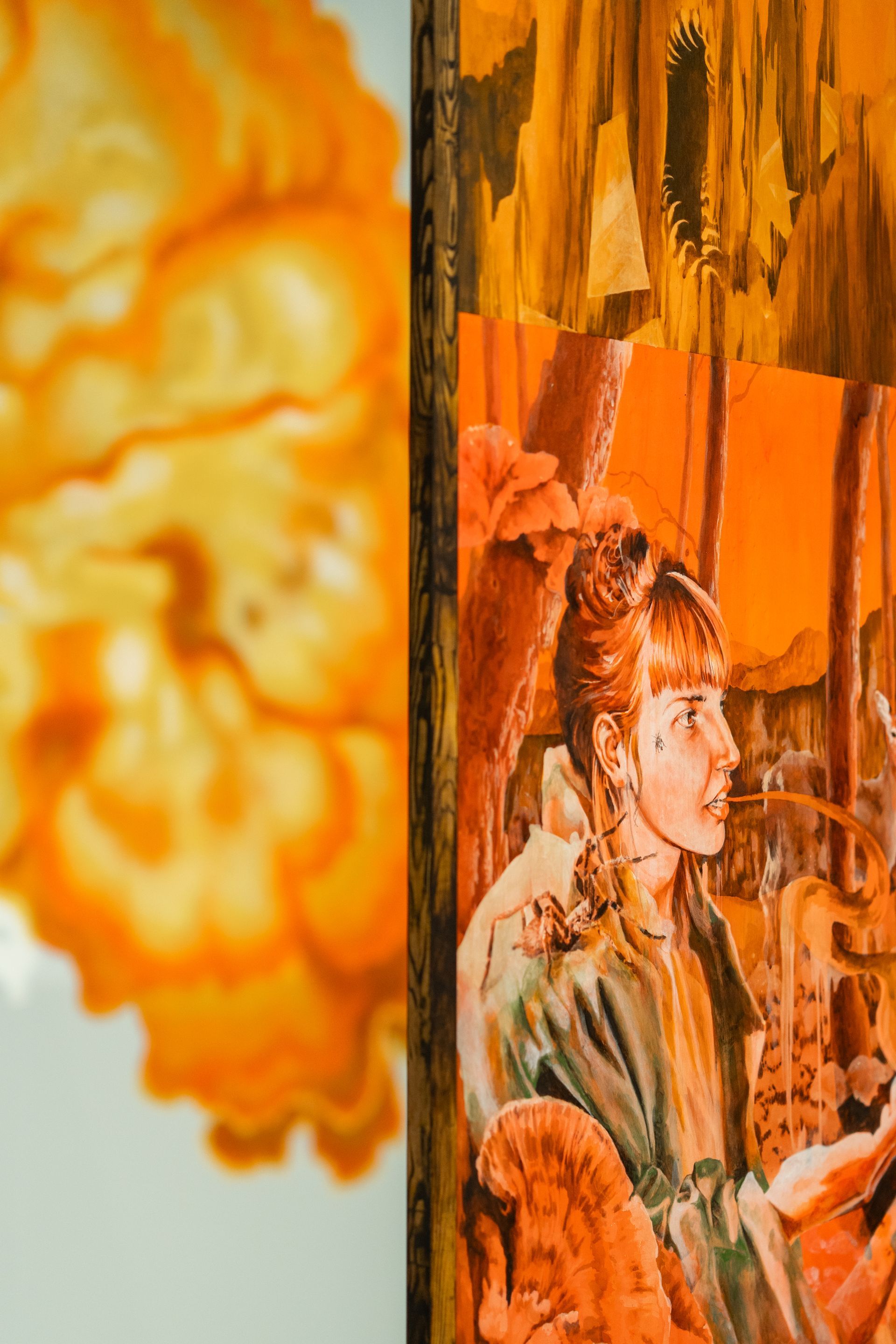 Nutwood Triptych painted with casein and pigments. Including hanging breads.