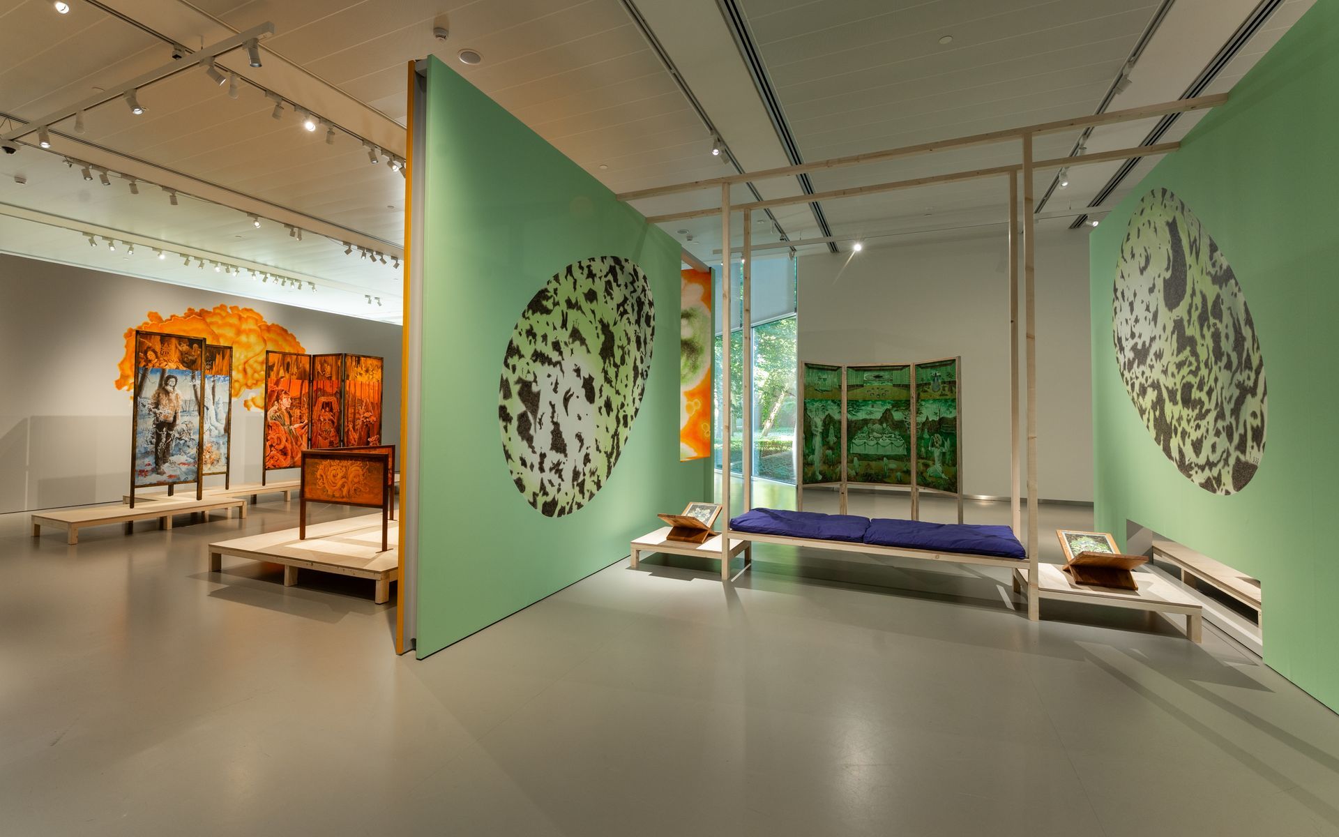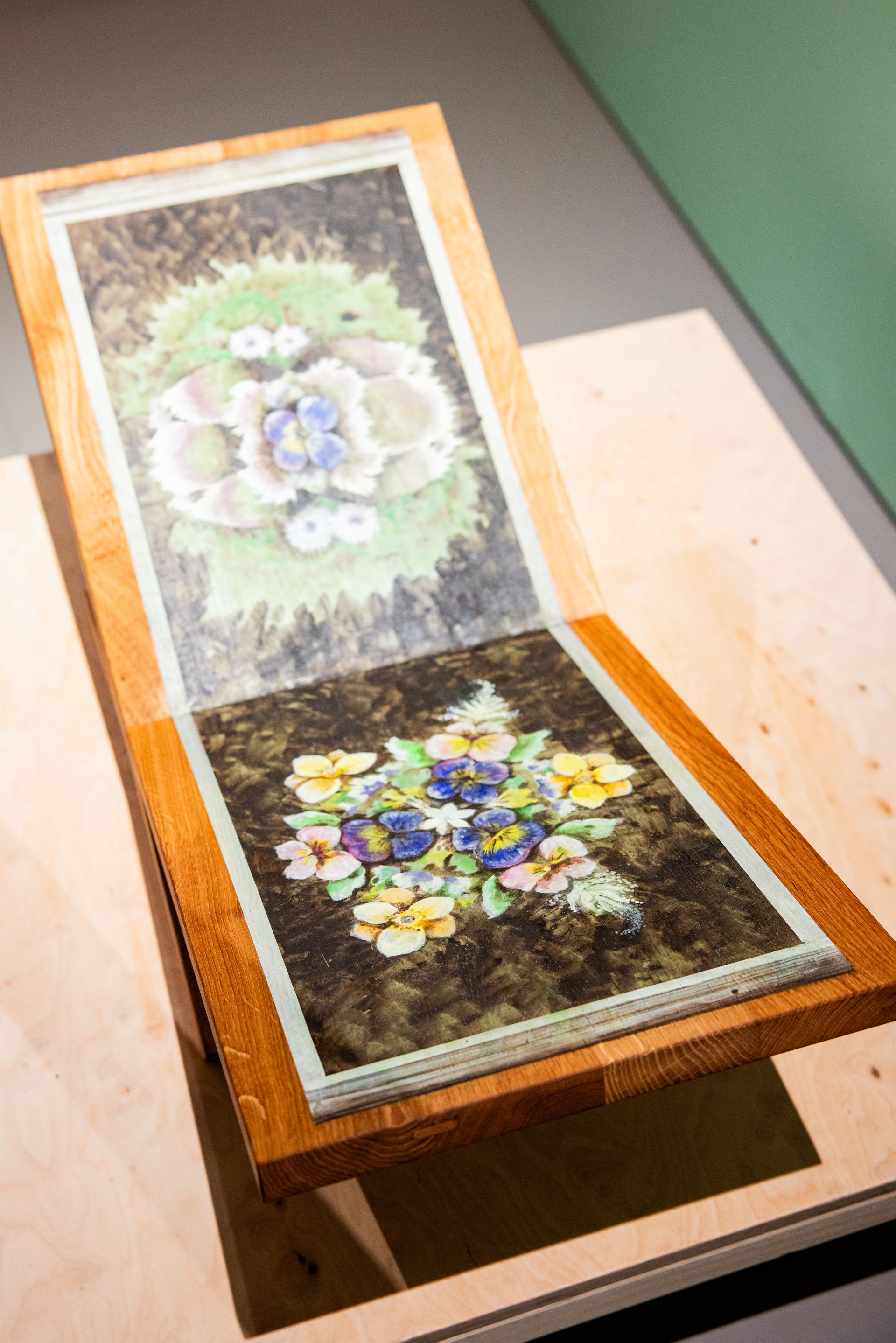 Oak roomdivider painted with casein and pigments.