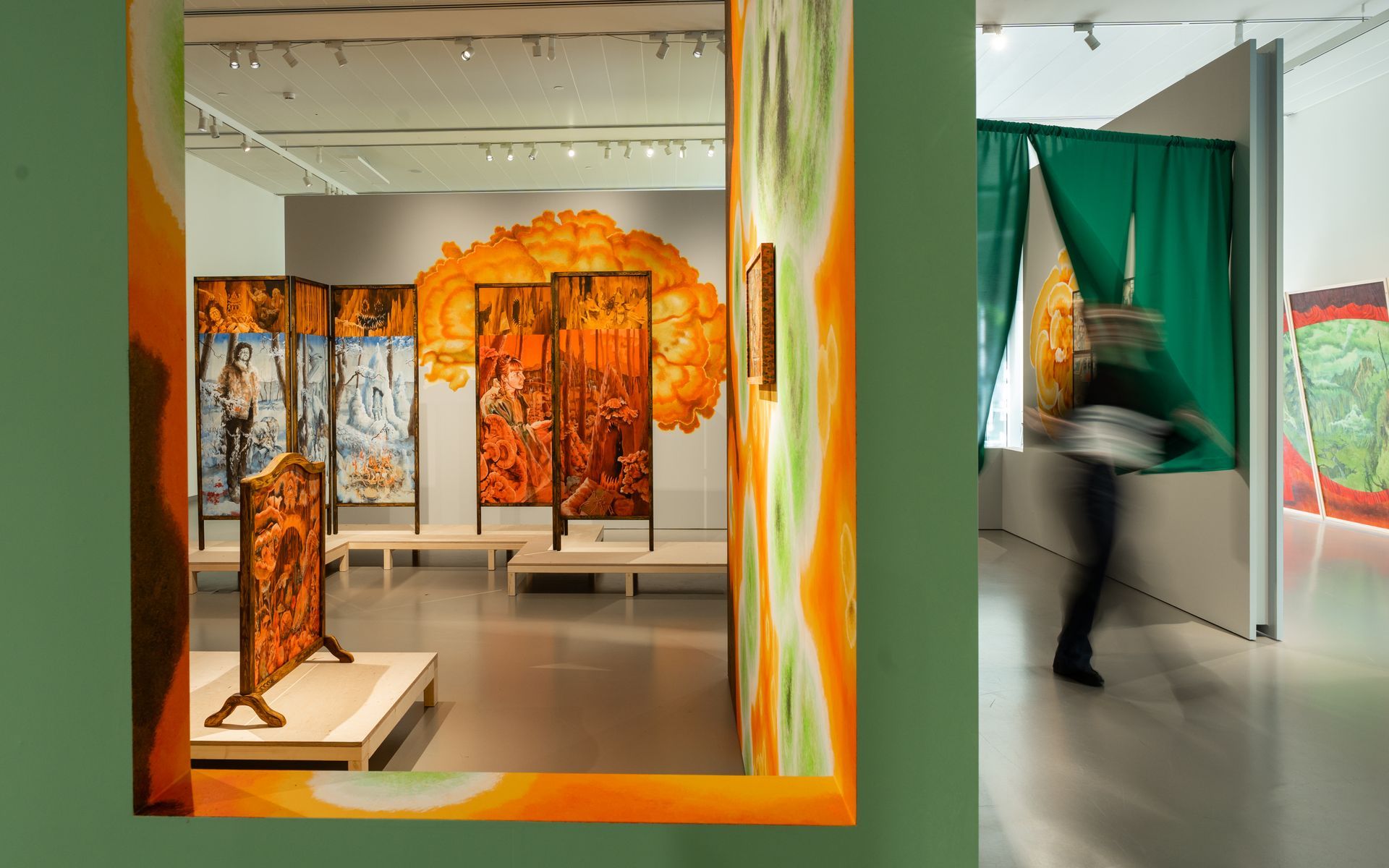 Wooden room divider painted with casein and pigments.